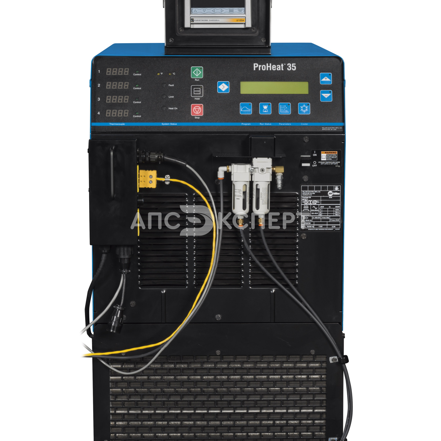 Встроенный регулятор температуры - Установка Индукционного нагрева ProHeat35 имеет встроенный терморегулятор, дающий возможность ручного или "температурного" программирования. "Ручное" программирование позволяет задать определенный уровень мощности в течении необходимого периода времени. Эта функция полезна при Предварительном нагреве, когда деталь нагревается до определенной температуры, а затем нагревательный прибор удаляется. "Температурное" программирование позволяет задать процессы предварительного нагрева, водородного отжига или снятия внутренних напряжений. Для нагрева могут использоваться четыре канала контрольных термопар и два канала мониторинговых термопар. Показания контрольных термопар считываются регулятором, который управляется процессом роста температуры в зависимости от самой "горячей" термопары, а также процессом остывания - в зависимости от самой "холодной" термопары. Эта функция гарантирует отсутствие вмешательств в соблюдение необходимой скорости нагрева и охлаждения.